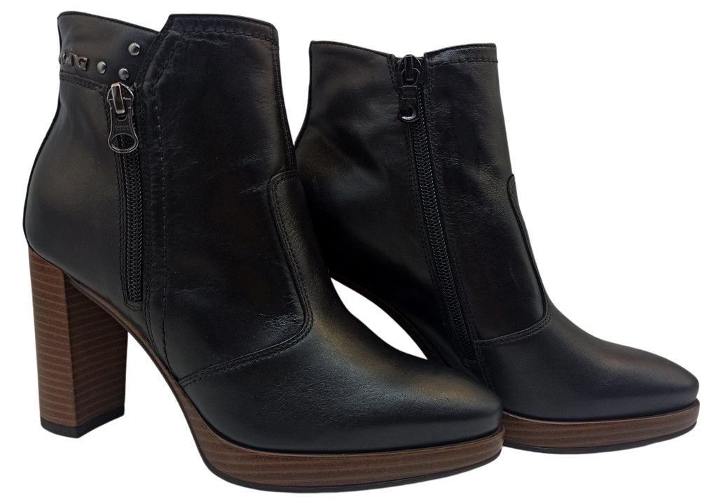 Tronchetto Stivaletto da Donna Nero Giardini I411230D 100 Colore Nero. Stivaletti eleganti sopra la caviglia, realizzati in vera pelle con tacco alto da 9,5 cm e plateau da 1,5 cm, ideali per slanciare la figura senza rinunciare al comfort. Design raffinato e versatile, perfetto per look casual chic o glamour. Dotati di zip laterale per una calzata pratica. Adatti alla stagione autunno/inverno. Qualità artigianale Made in Italy.