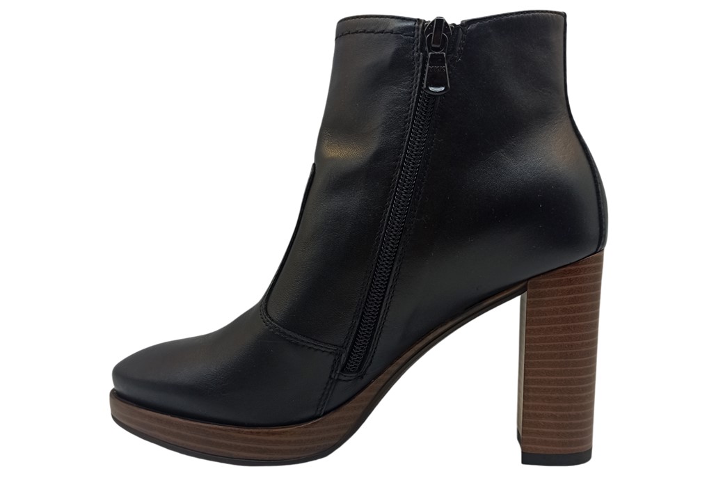 Tronchetto Stivaletto da Donna Nero Giardini I411230D 100 Colore Nero. Stivaletti eleganti sopra la caviglia, realizzati in vera pelle con tacco alto da 9,5 cm e plateau da 1,5 cm, ideali per slanciare la figura senza rinunciare al comfort. Design raffinato e versatile, perfetto per look casual chic o glamour. Dotati di zip laterale per una calzata pratica. Adatti alla stagione autunno/inverno. Qualità artigianale Made in Italy.