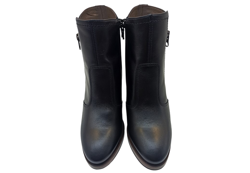 Tronchetto Stivaletto da Donna Nero Giardini I411230D 100 Colore Nero. Stivaletti eleganti sopra la caviglia, realizzati in vera pelle con tacco alto da 9,5 cm e plateau da 1,5 cm, ideali per slanciare la figura senza rinunciare al comfort. Design raffinato e versatile, perfetto per look casual chic o glamour. Dotati di zip laterale per una calzata pratica. Adatti alla stagione autunno/inverno. Qualità artigianale Made in Italy.