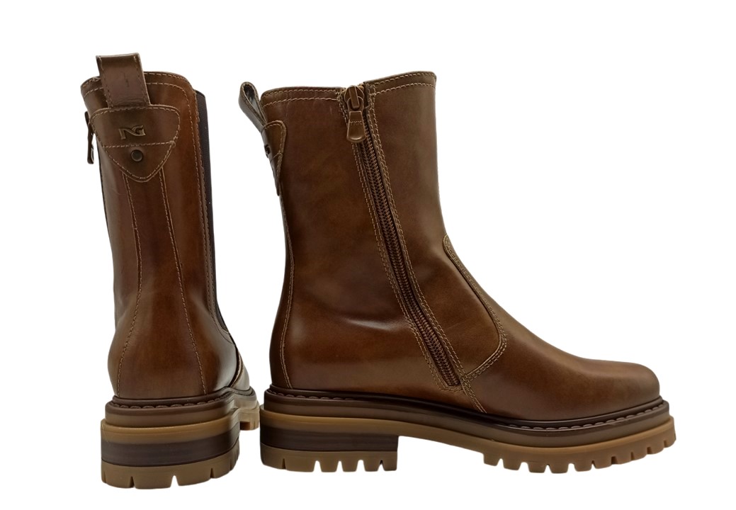Stivali da Donna Nero Giardini I411831D 400 Colore Cuoio. Eleganti stivali in stile Chelsea con linea sopra la caviglia, realizzati in vera pelle di alta qualità. Tacco basso da 4,5 cm e plateau da 2,5 cm per un comfort ideale in ogni occasione. Facili da indossare grazie agli elastici laterali, con plantare interno estraibile per una maggiore praticità.