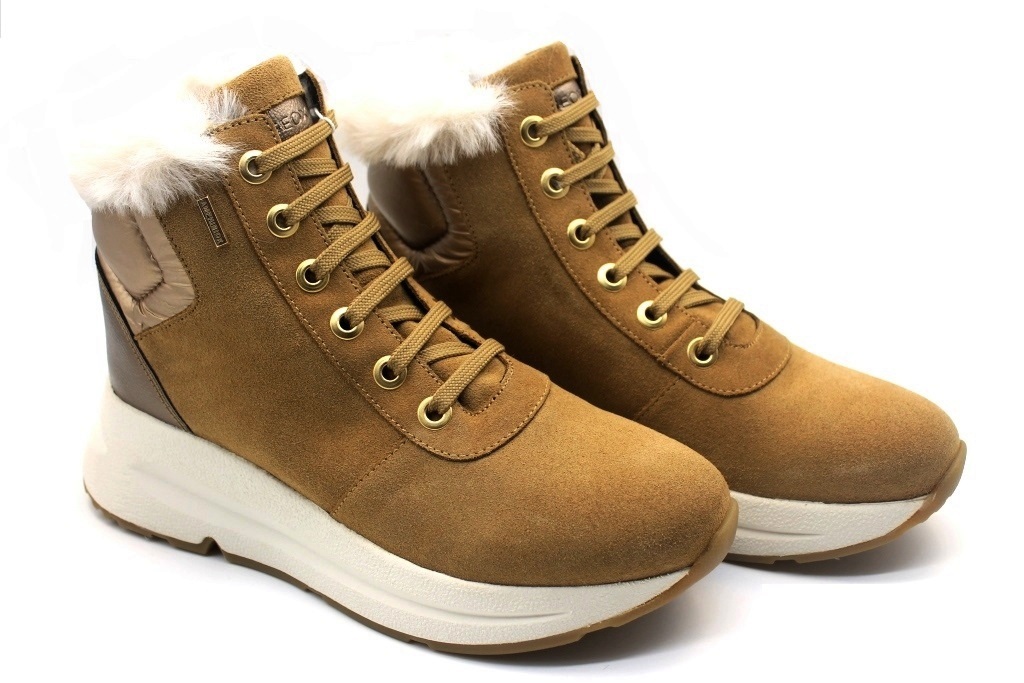 Tronchetti Sneakers Zeppa Platform Bassi Stivali Gialli da Donna alla Caviglia GEOX BACKSIE D04FPA 022BC C5F9H Scarpe Stivaletti Cammello Tronchetti Ankle Boot Alla Moda Casual Eleganti Interno Imbottito Lapin Tacco Basso Leggeri Traspiranti in Vera Pelle Autunnali Invernali Italian Patent Membrana Impermeabile Traspirante e Tecnologia Amphibiox "brevetto italiano" che garantisce un'impermeabilità eccellente