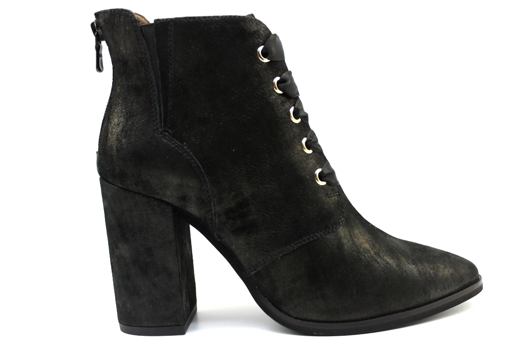 Tronchetto Stivaletto Donna Nero Giardini A806512D 100 Scarpa Stivale alla Caviglia a Punta con Zip al Tallone e Lacci in Raso in Vera Pelle Scamosciata Effetto Laminato Elastici Laterali per una maggiore aderenza Tacco Alto Comodo Casual Alla Moda di Tendenza per il Tempo Libero e da Passeggio Suola Antiscivolo Made in Italy Autunnale Invernale