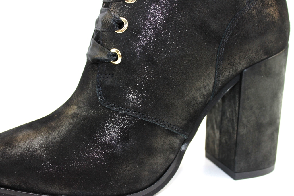 Tronchetto Stivaletto Donna Nero Giardini A806512D 100 Scarpa Stivale alla Caviglia a Punta con Zip al Tallone e Lacci in Raso in Vera Pelle Scamosciata Effetto Laminato Elastici Laterali per una maggiore aderenza Tacco Alto Comodo Casual Alla Moda di Tendenza per il Tempo Libero e da Passeggio Suola Antiscivolo Made in Italy Autunnale Invernale
