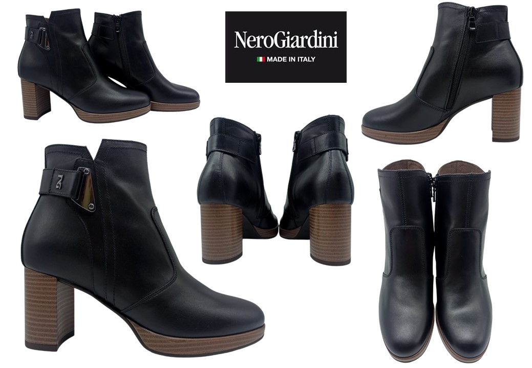 Tronchetto Stivaletto da Donna Nero Giardini I411220D 100 Colore Nero Black Stivali Stivaletti Tacco Medio 7,5 cm e Plateau 1,5 Scarpe Tronchetti sopra la Caviglia Comodi Alla Moda da Passeggio di Tendenza Glamour Casual Eleganti Tomaia in Vera Pelle Chiusura con Zip laterale Autunnali Invernali Made in Italy