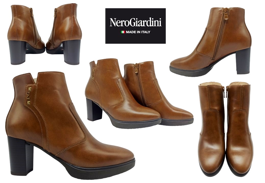 Tronchetto Stivaletto da Donna Nero Giardini I411200D 400 Colore Cuoio Stivali Stivaletti Tacco Alto 7,3 cm e Plateau 2 cm Scarpe Tronchetti sopra la Caviglia Comodi Alla Moda da Passeggio di Tendenza Glamour Casual Eleganti in Vera Pelle Chiusura con Zip laterale Autunnali Invernali Made in Italy